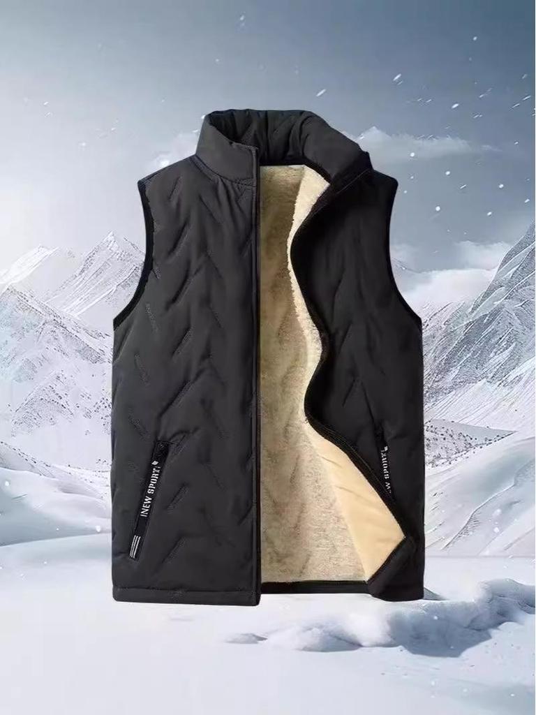 Herren Weste aus schwarzem Lammwolle - Warm, Verdickt, Locker geschnitten Oberbekleidung für Herbst und Winter