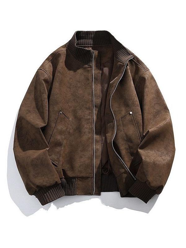 Unisex Retro PU-Leder Stehkragen Baseball Pilot Jacke - Herbst Winter Kollektion