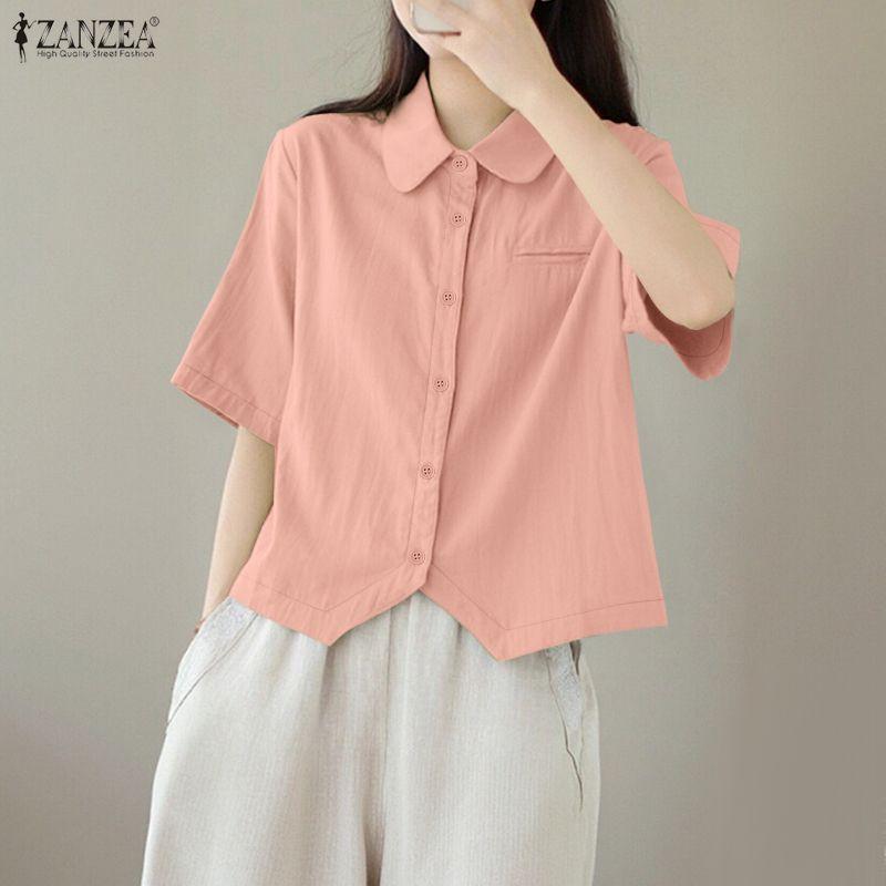 ZANZEA Damen Umlegekragen Locker Lässig Halbarm Bluse