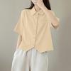 Damen Sommer Rundhals Einfarbig Lässig Kurzarm Bluse