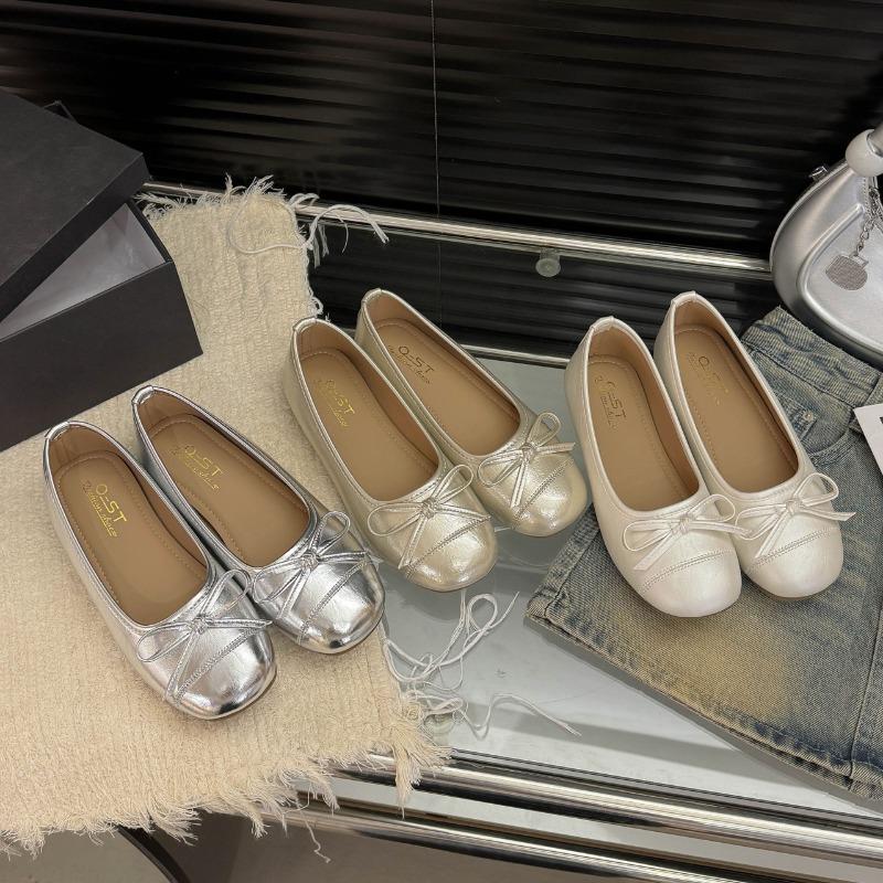 Neue sanfte Dameneinzel schuhe 2 neue elegante Schleife runde Spitze leichter Mund Rock