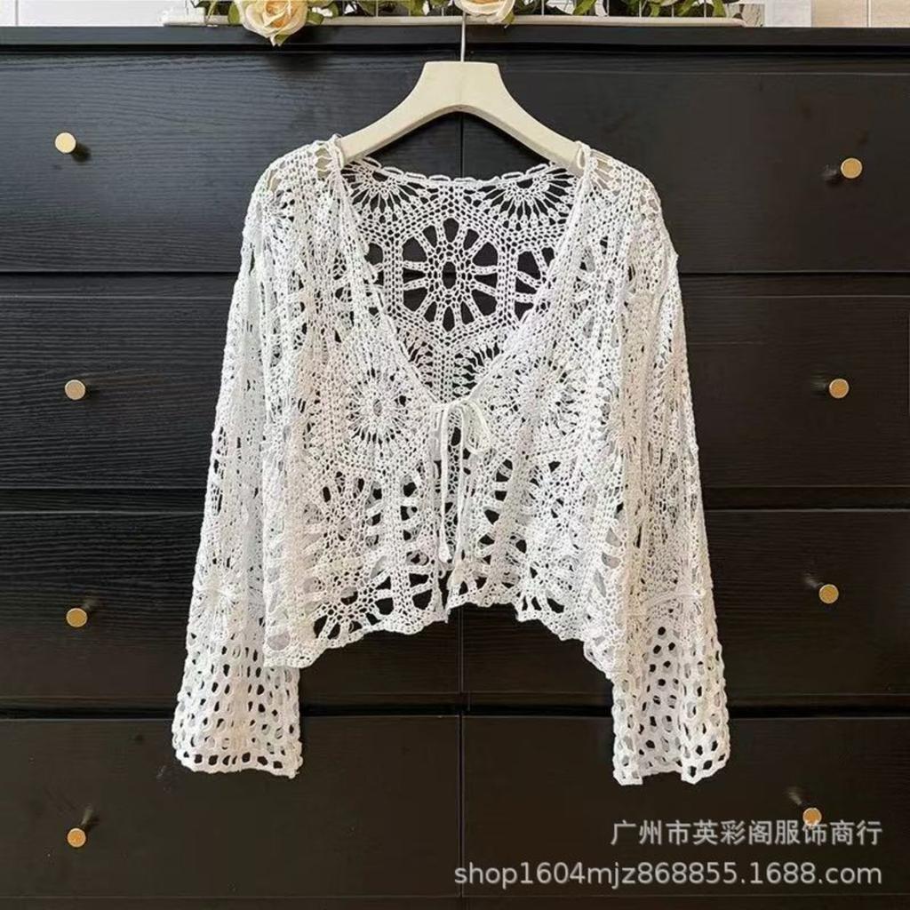 Koreanischer, Modischer Und Vielseitiger V-Ausschnitt Durchbrochener Strick-Cardigan Für Damen, Sommerliche Lässige Oberbekleidung, Kurzes Lässiges Oberteil.