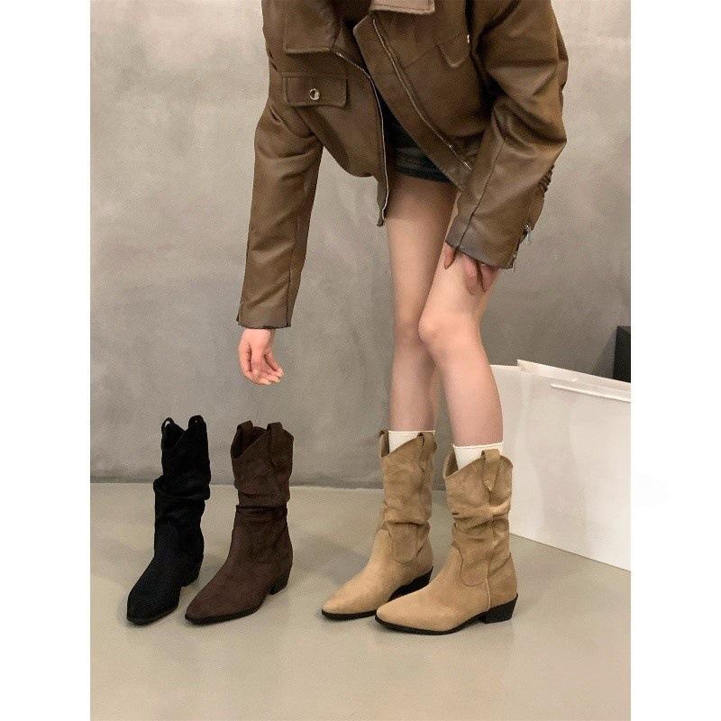 Grobe Ferse Khaki Wildleder Flor Mittlere Ritterstiefel Damenstiefel Saison Spitze V-Ausschnitt Skinny Kurze Stiefel