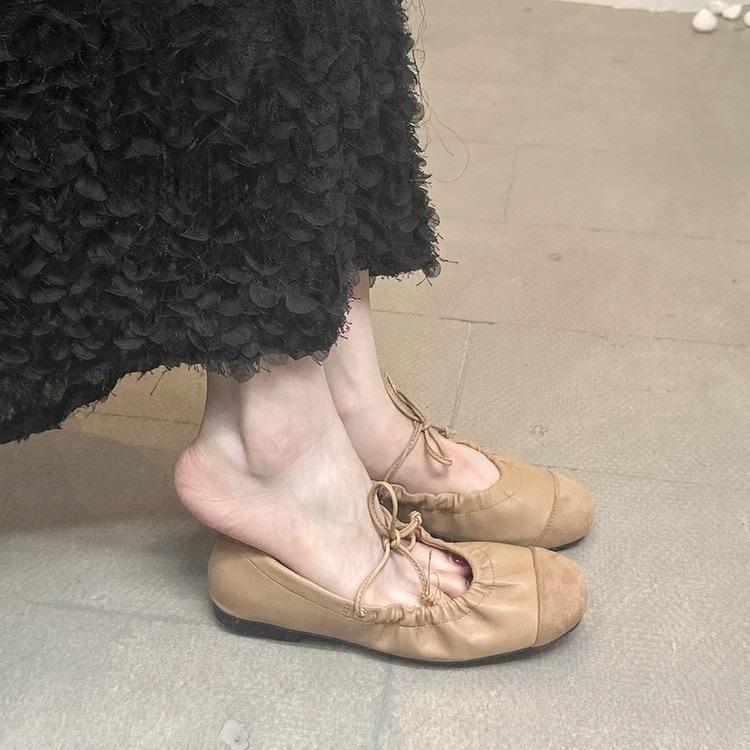 Retro-Falten-Weichleder-Nischen-flache Mary-Jane-Schuhe für Damen, Frühling und Herbst, Temperament
