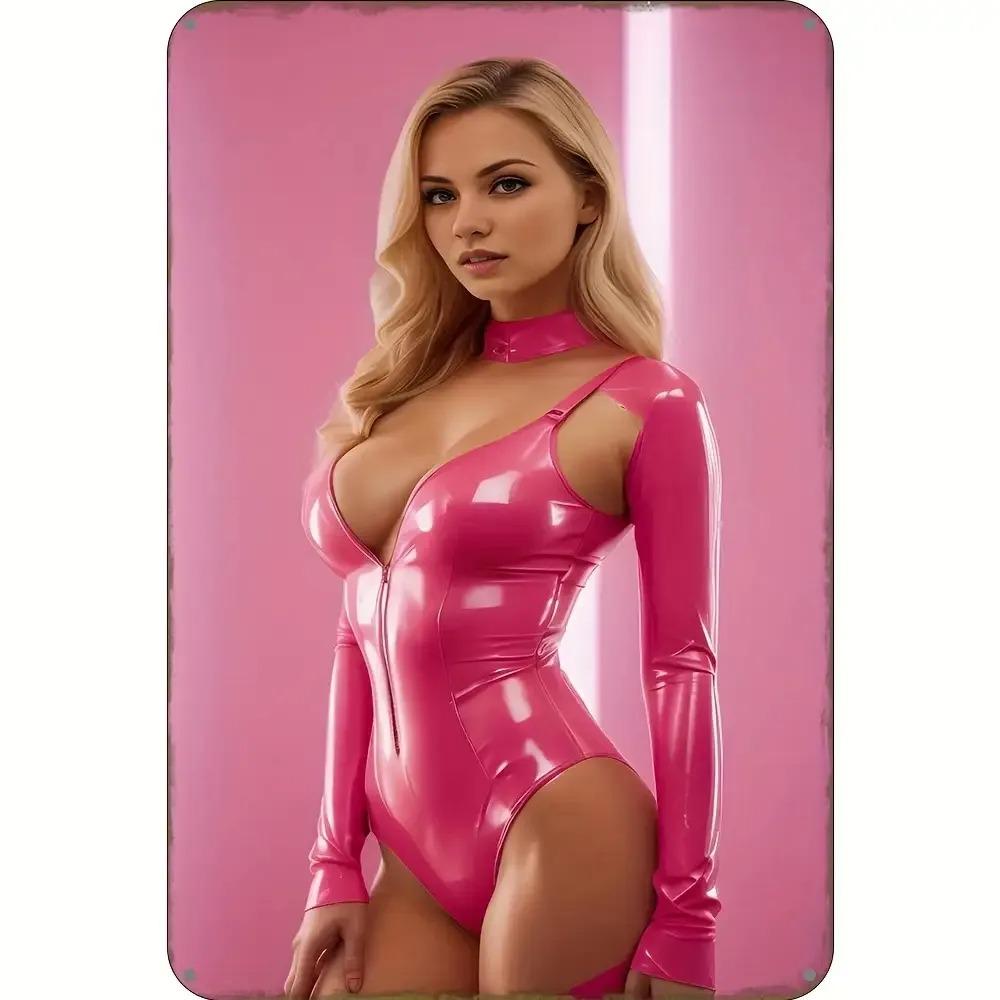 Metall Wanddeko Schild 2D Rund Rosa Barbie Mädchen Sonniges Böhmisches Stil Heimdeko für Schlafzimmer