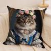 Maine Coon Katze Kissenbezug Seidiger Kurzer Plüsch Sofakissenbezug Versteckter Reißverschluss Weiche Staubdichte Hülle für Heimdekoration
