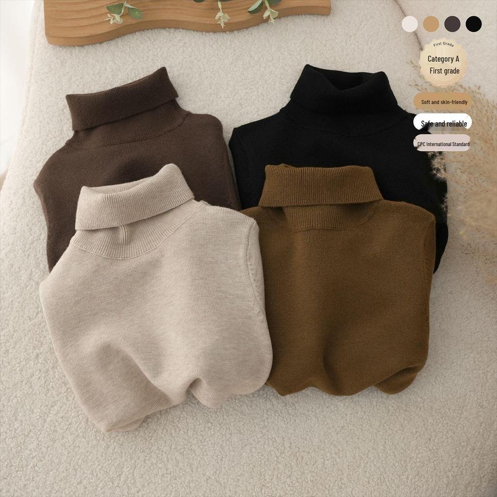 2025 Kinder Wollrollkragenpullover - Jungen Koreanischer Stil Einfarbiger Pullover Strickware