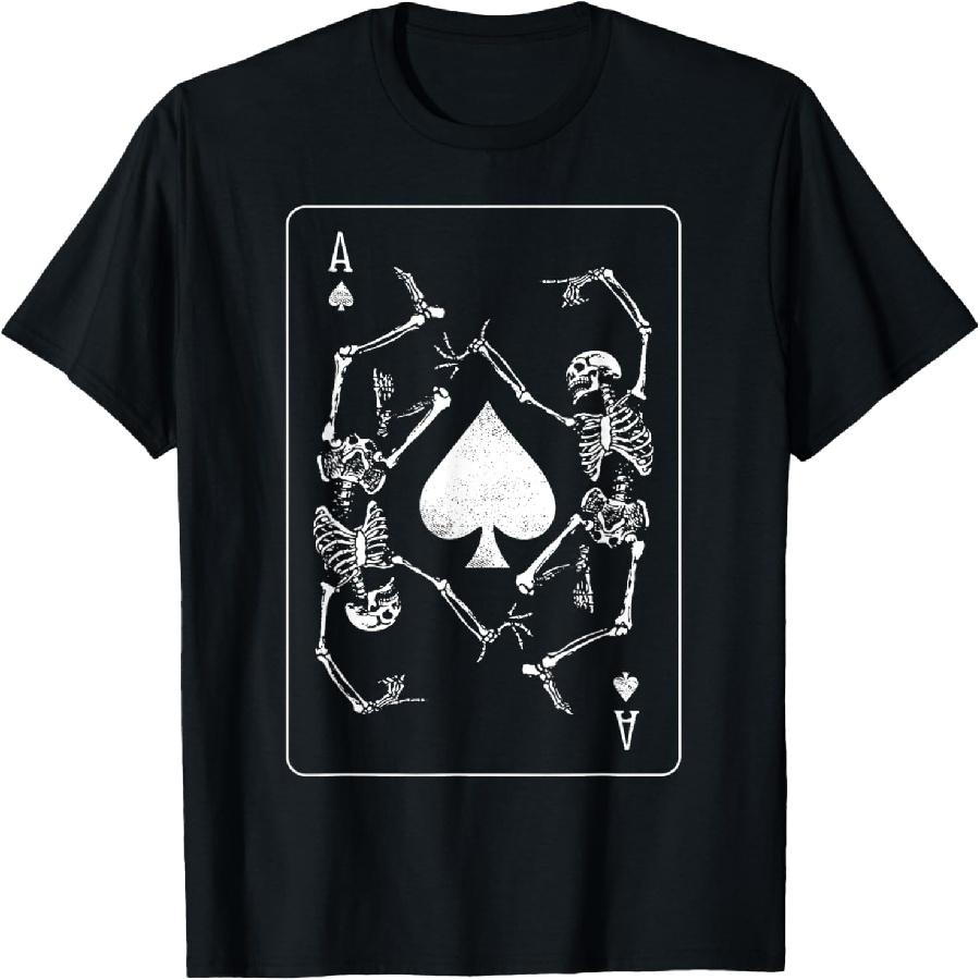 Goth Punk Ace Of Spades Card Shark Gambler Skeleton T-Shirt