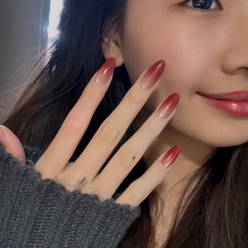 Wine Red Cat Eye Nail Stickers: Gradient, Removable, Handmade, High-Grade Whitening Finish.