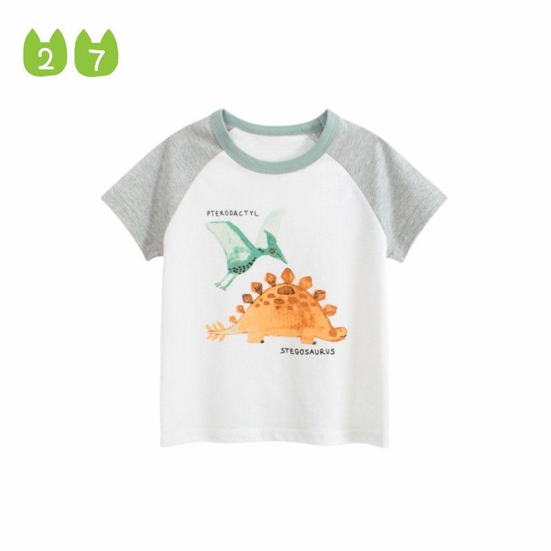 27Kids Summer Children's Clothing Boys' Short-Sleeved T-Shirts Kidsren's Dinosaur Tops Boys' Pure Cotton Raglan Sleeve Clothes