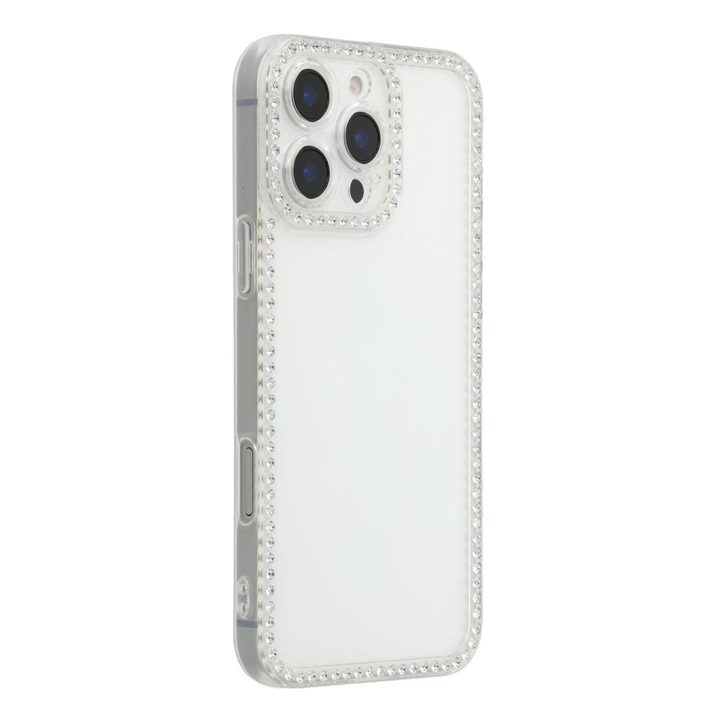 For iPhone 16 Pro TPU Case Rhinestone Decor Clear Phone Back Cover, Precise Cutout