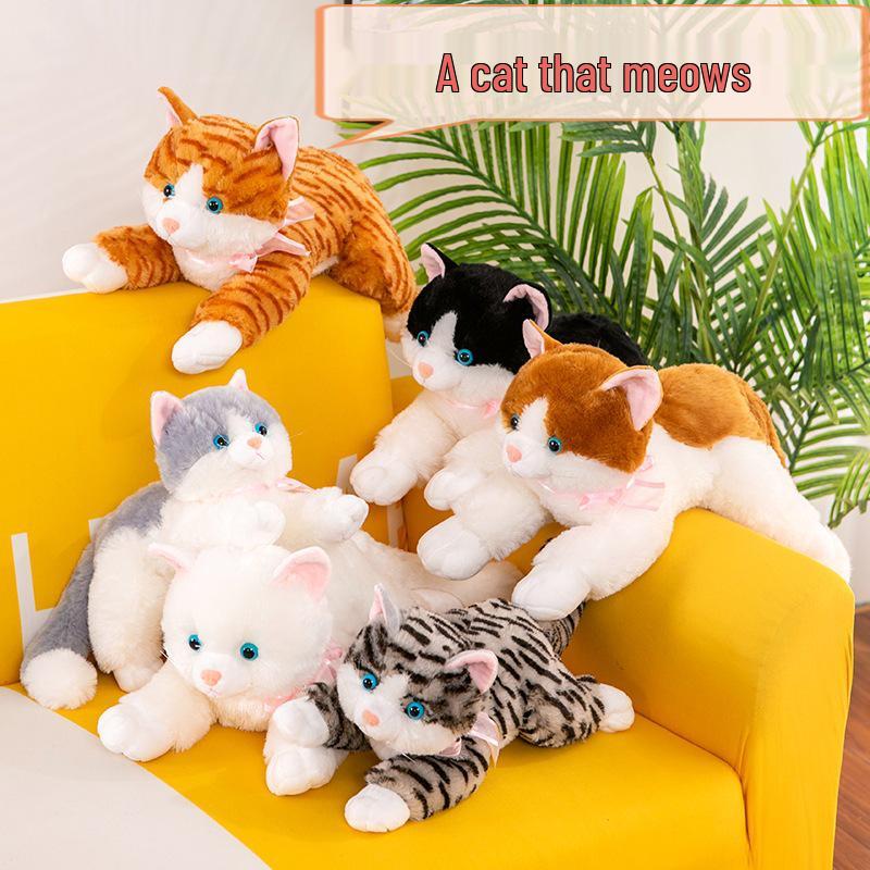 Süßes Grenzüberschreitendes Miauendes Kätzchen Kissen: Realistisches Plüschkatzenspielzeug