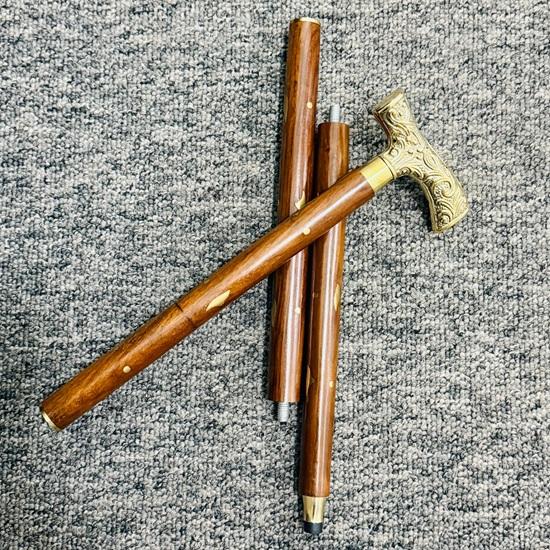 Messing Designer Viktorianischer Derby-Griff Gehstock Brauner Holz-Einlege-Stock Londoner Verkäufer
