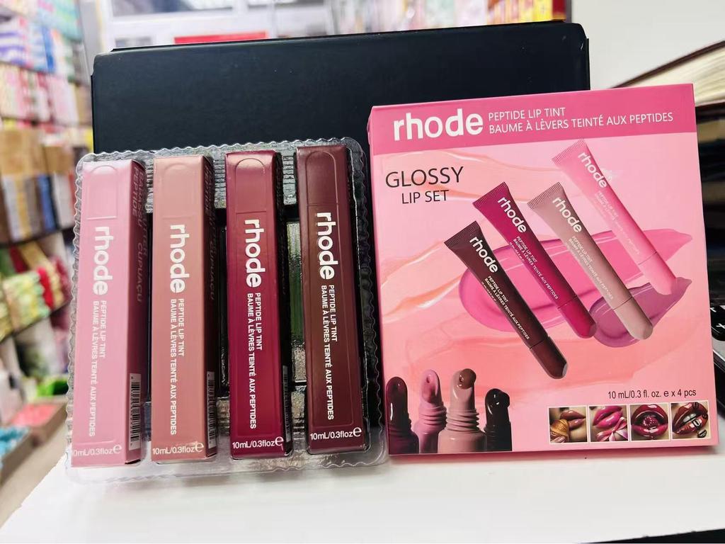 Rhode Hailey Getöntes Himbeer-Espresso-Lippen-Glanz-Set - 4 Stück