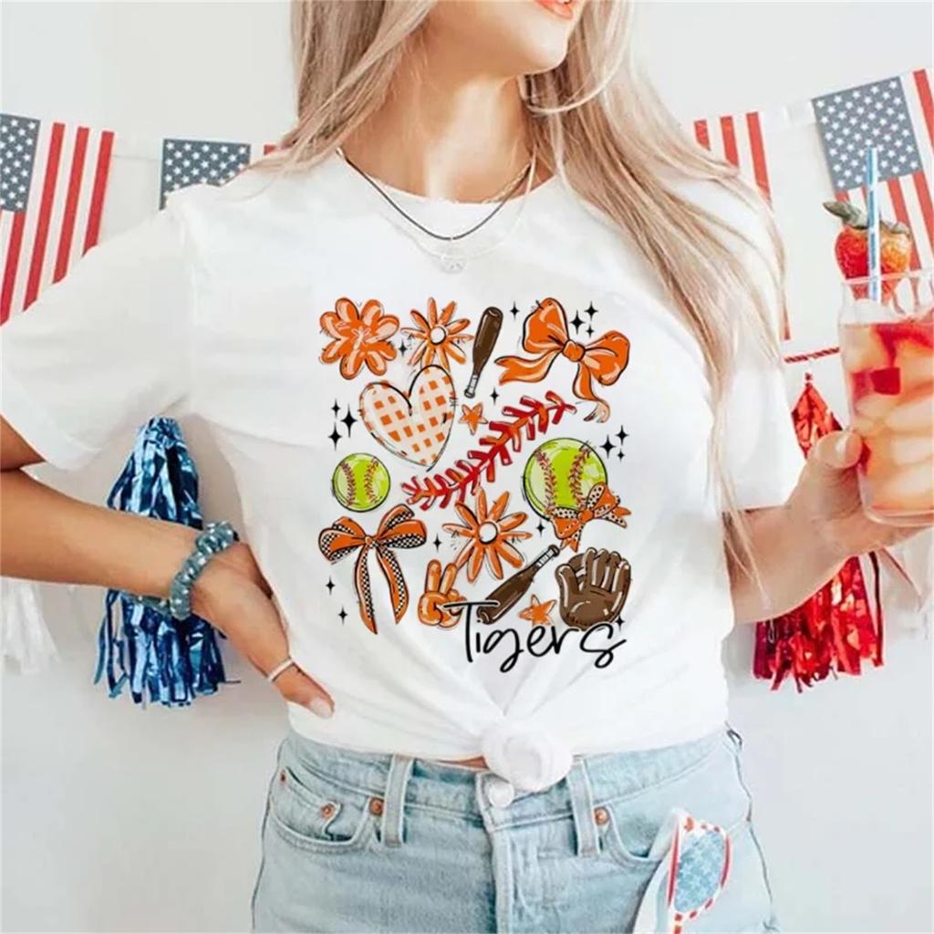 Cute Women's Top Short Sleeve Casual Printed Baseball Pattern Round Neck T-Shirt Summer New Fashion Women's Clothing T-Shirt