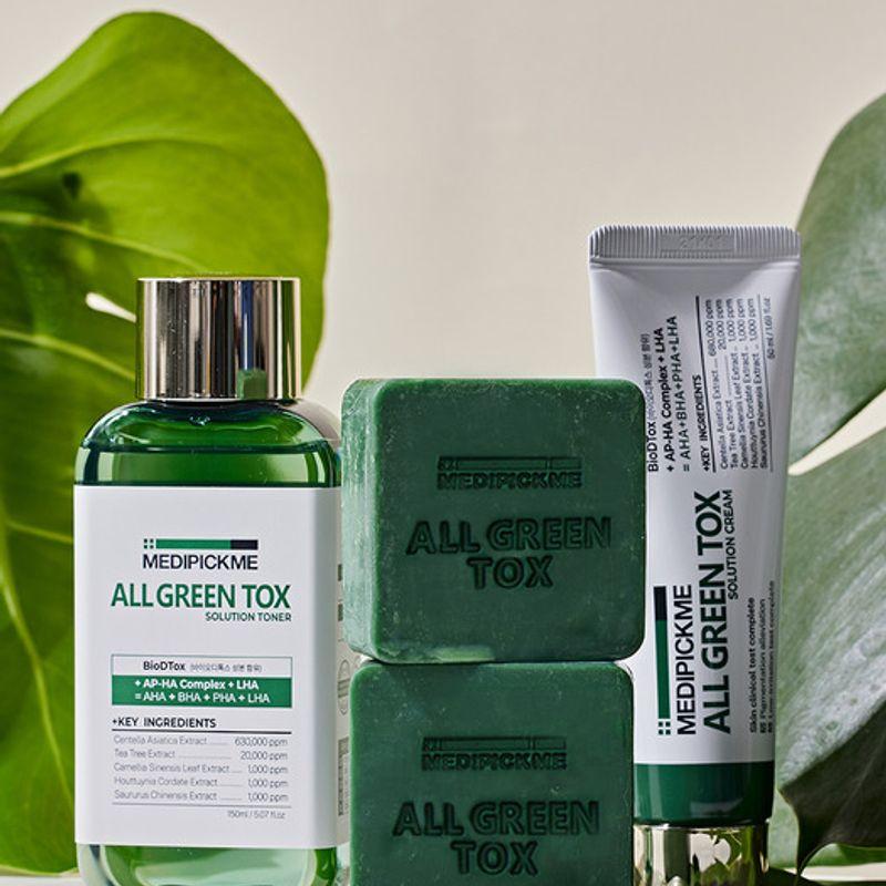 MEDIPICKME All Green Tox Solution Reinigungsseife + Toner + Creme 3-teiliges Set