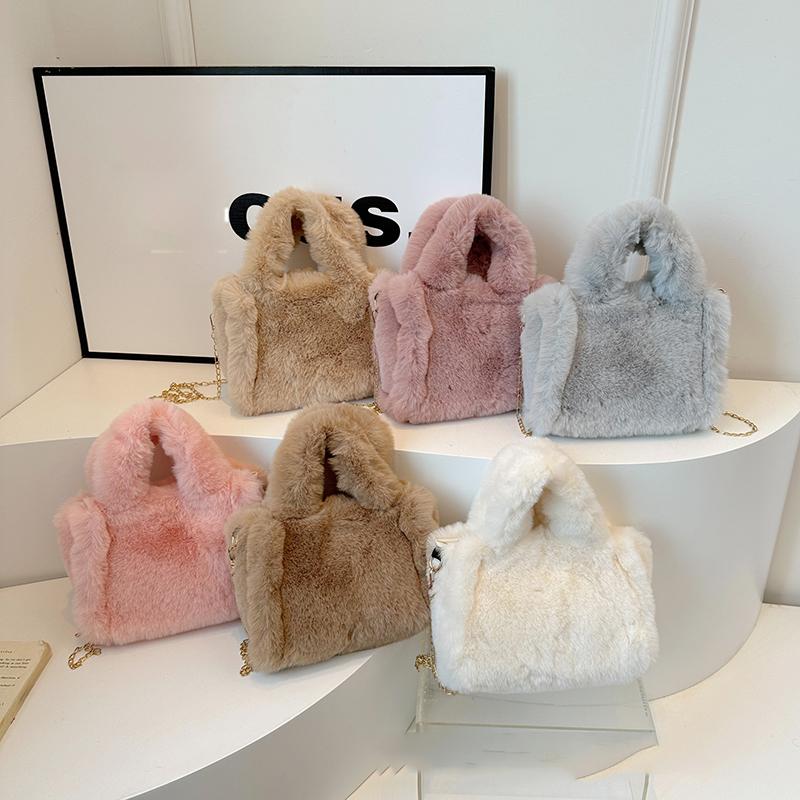 Winter Faux Fur Shopper Tote Bag for Women Plush Handbag Designer Fluffy Wool Shoulder Bag Women Furry Crossbody Messenger Bag KTB