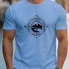 The 2025 summer new mens Tshirt features a casual large compass pattern print a sporty and comfortable roundneck shortsleev