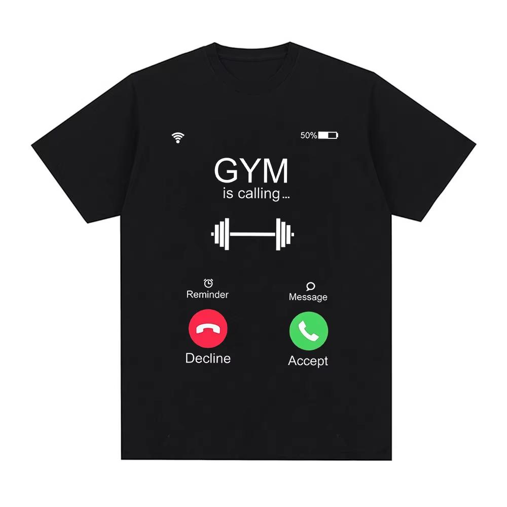 Incoming Call Gym Is Calling Funny TShirt Mens Women Fashion Casual Tshirts Cotton Loose Short Sleeve T Shirt Tops Streetwear