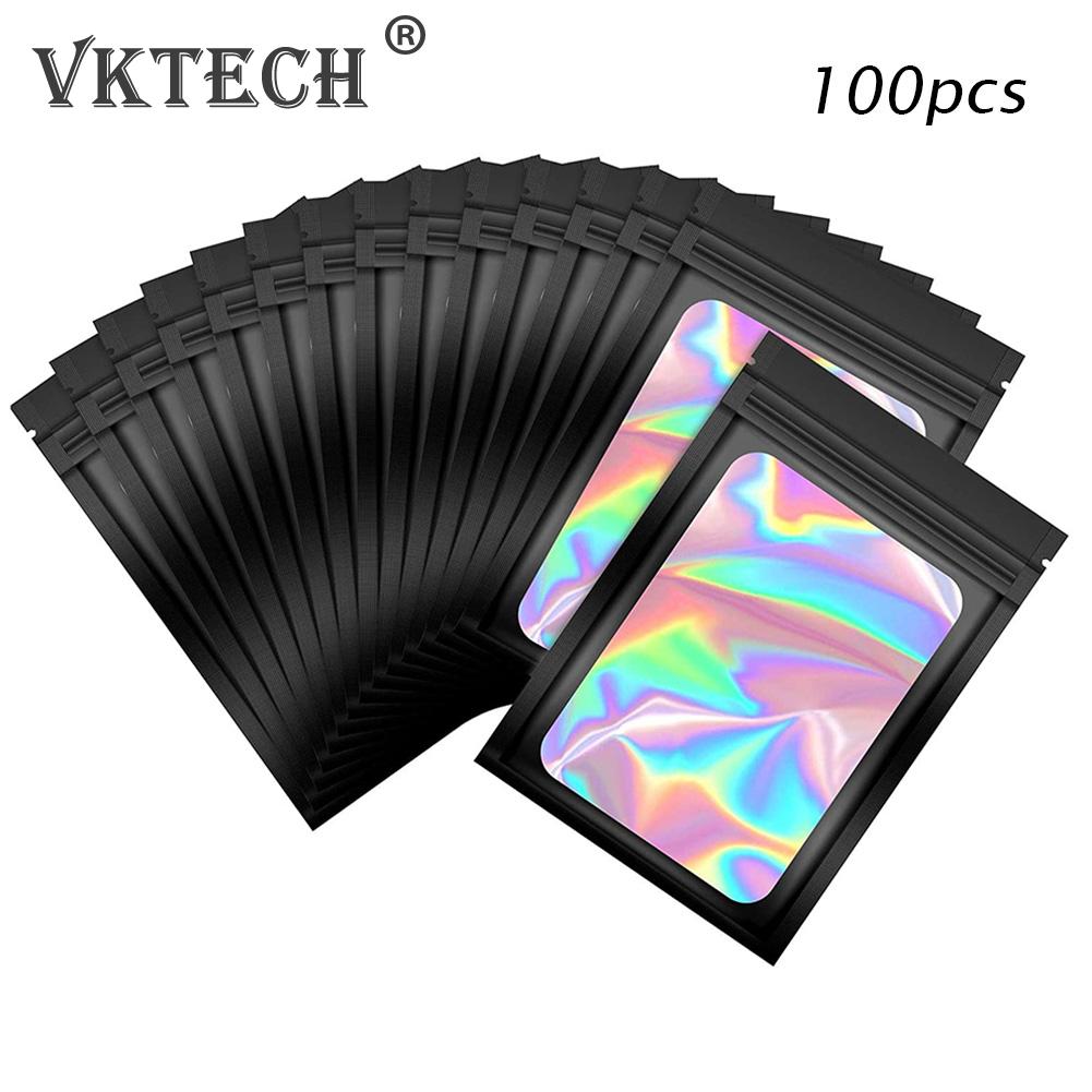 100pcs Smell Proof Mylar Bags Resealable Odor Proof Bags Holographic Packaging Pouch Bag Food Jewelry Laser Zip Lock Bag