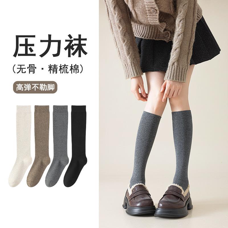Pressure Calf Socks Women'S Autumn And Winter Warm Solid Color Cotton Socks Japanese Plastic Beautiful Legs Thin Double Needle Long Tube Knee Socks