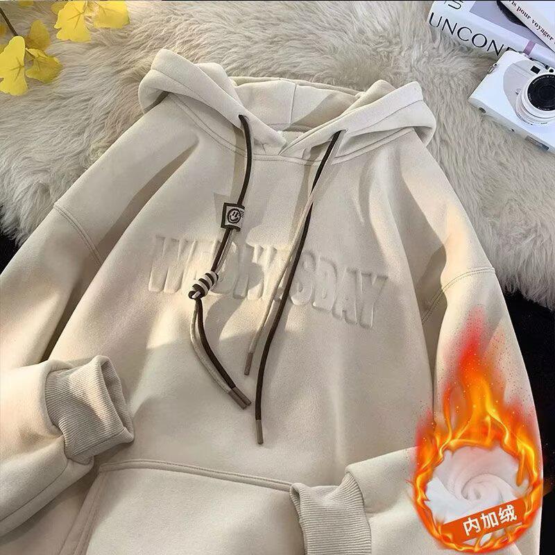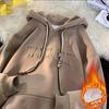 Herren Oversized Schwerer Hoodie - Herbst/Winter Trendiger Lockerer Schnitt mit Plus Samt und Gestempeltem Design