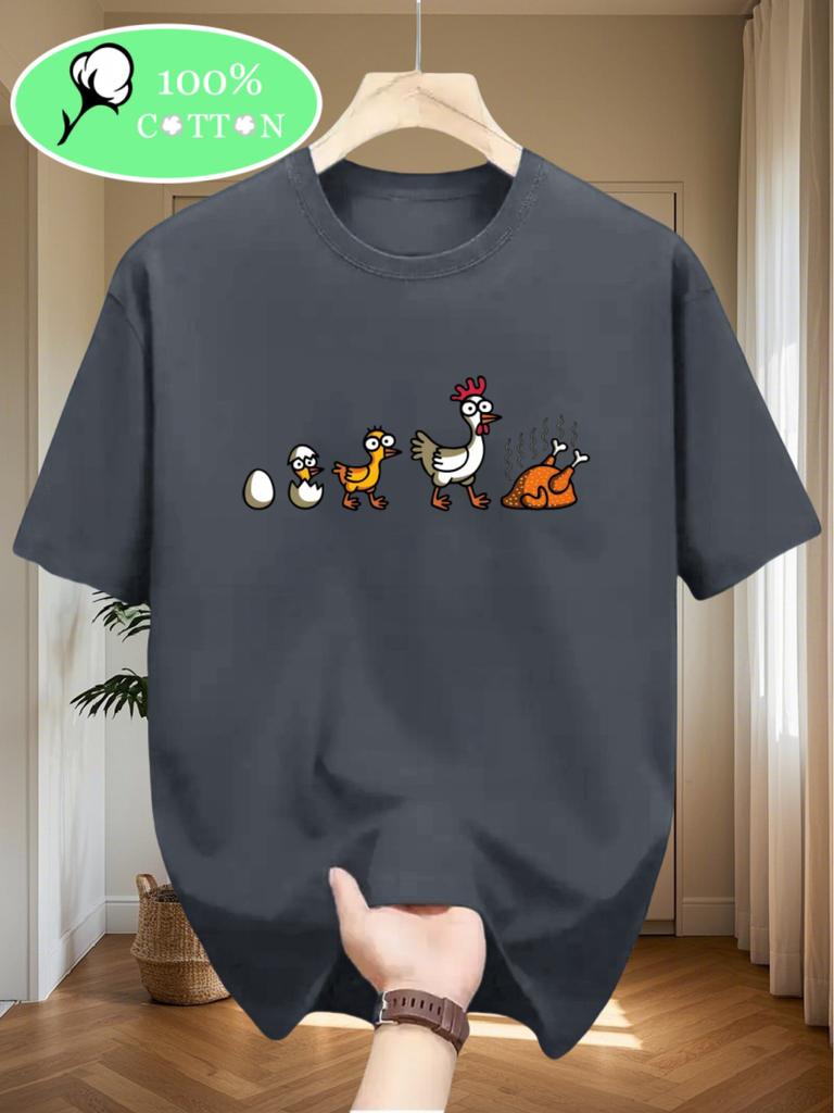 Summer Mens 100 Cotton Printed Chicken Pattern T Shirt Comfortable Year Round Workwear Suitable for Poultry Farming Use