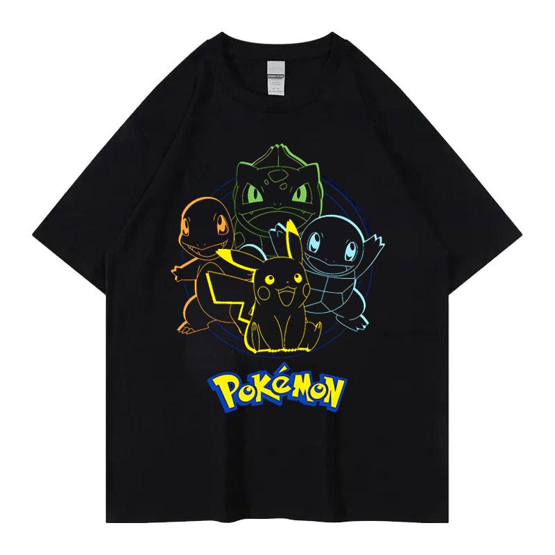 Pok É Mon Pikachu Little Fire Dragon Johnny Turtle Pok É Mon Printed Short Sleeved Mens Tshirt Childrens Parent Child Wear