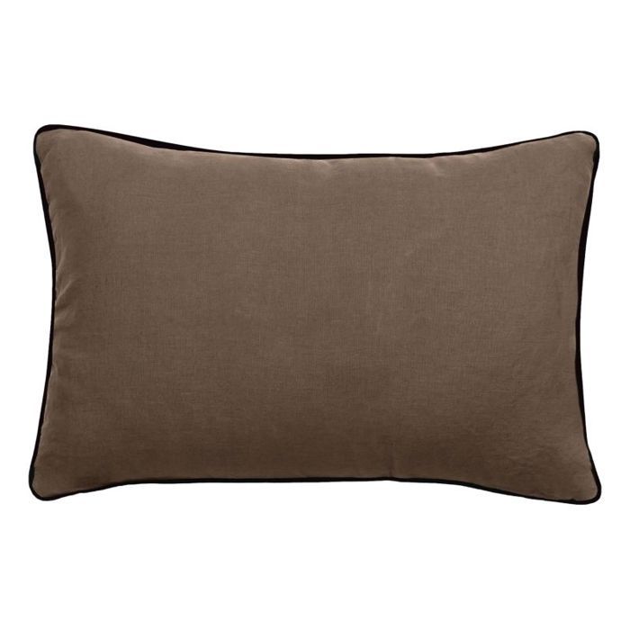 Kissenhülle gewaschener Leinen - Mit gewaschener Baumwolle gefüttert - Mit schwarzer Borte "Prélude" Südwind - Prélude Tabak - Kissenhülle 30 x