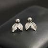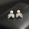 New product sweet and exquisite niche stone leaf earrings temperament versatile black and white imitation pearl silver needle small stud earrings wome