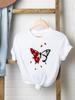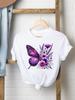 (Asiatische Größe) Blume Schmetterling süß 90er Jahre Frau Druck Damenbekleidung Kurzarm T-Shirt Mode Tee Top Damen Grafik-T-Shirts