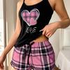 Damen Sexy Träger-Shorts Dünner Pyjama Buchstaben-Print Karoshorts Großer Pyjama Romantische Hauskleidung Sexy Nachtwäsche Kurzer Pyjama