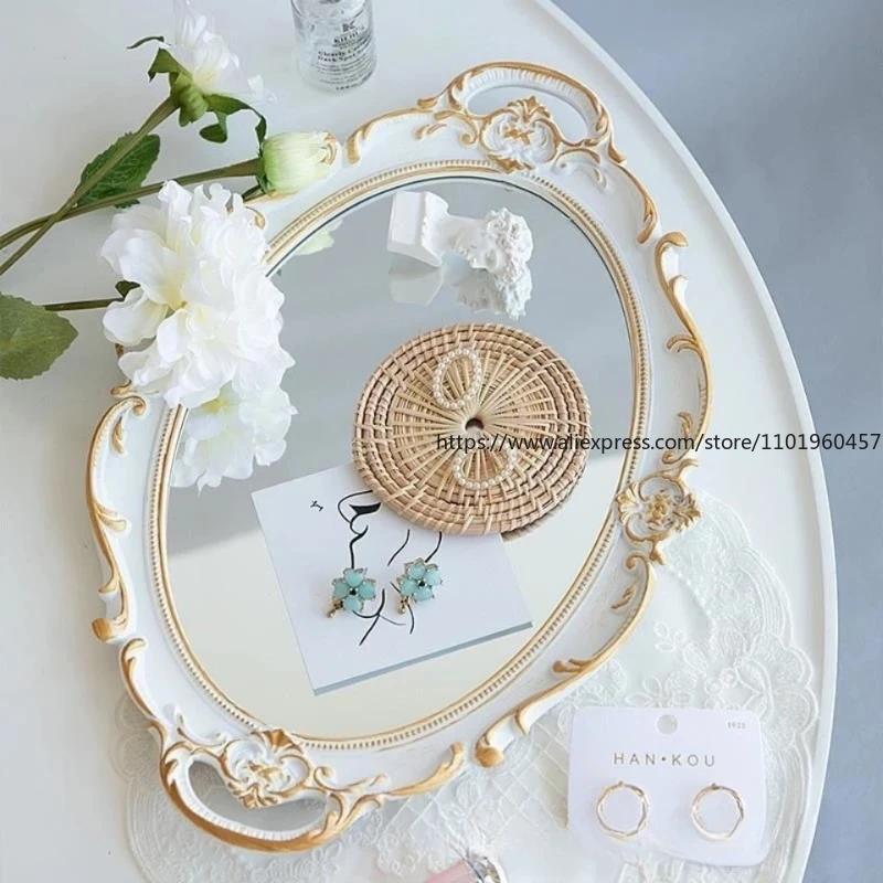 Europäischer Stil Retro Schminkspiegel Tablett Schminktisch Schmuck Kosmetik Parfüm Aufbewahrungstablett Dekoration Display Heimschmuck