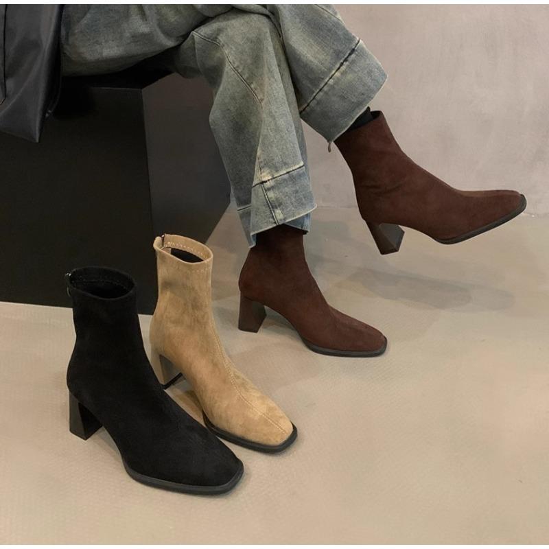Neue Winter-Kurzplüsch-Damen-Knöchelboots Mode Quadratische Zehenpartie Kurze Stiefel Damen Elegant Niedriger Absatz Lange Stiefel