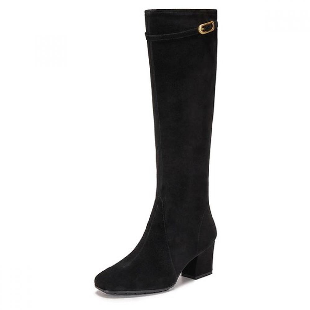 IK Plus 8555 Knielange Langschaftstiefel aus schwarzem Wildleder