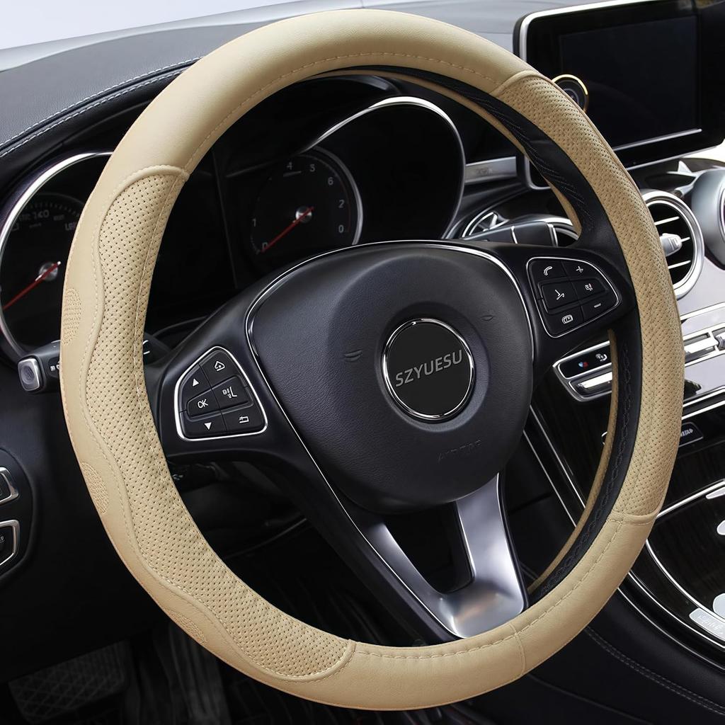 Car Steering Wheel Cover with Anti-Slip Lining Universal 14.5-15 Inch (Beige)
