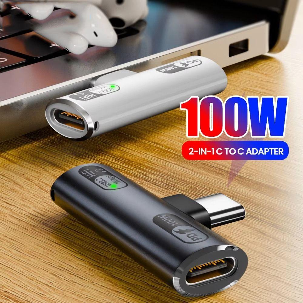 2 in 1 USB Type C Adapter Right Angle PD 100W USB OTG Adapter Portable Fast Charging for Phone/Computers/Laptop/U Disk