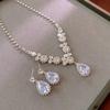 Französisches Gericht Strass-Wassertropfen Schmuckset: Luxuriöses Halsketten- und Ohrring-Set für Damen