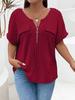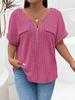 Einfarbiges Damen-T-Shirt mit Reißverschluss-Pullover, mit gefälschter Tasche, große Größe, kurze Ärmel, lockere Passform.