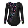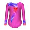 Mädchen Turnanzug Gedruckt Patchwork Glänzende Strassstein-Verzierung Langarm Overall Bühnenkostüm