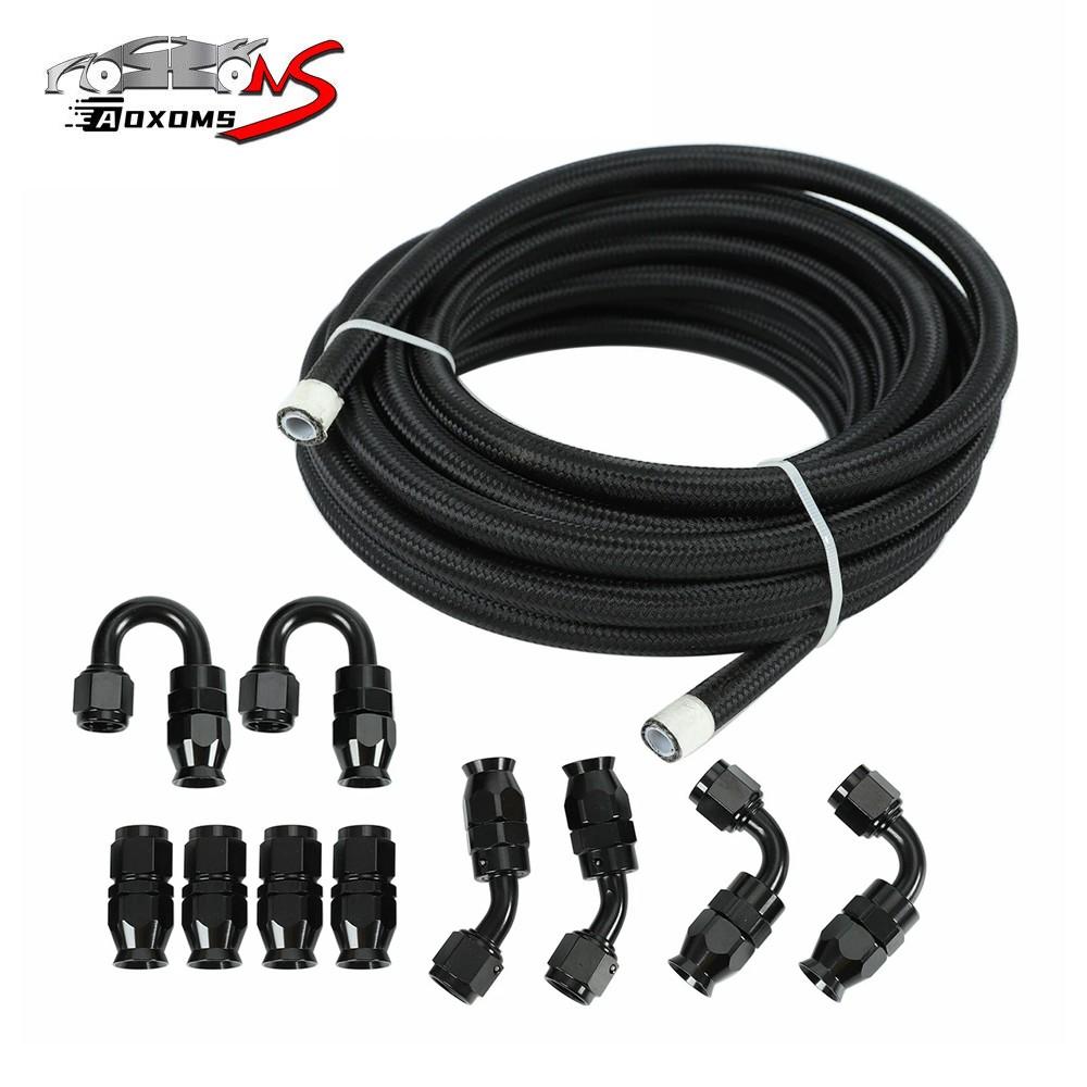 Black 4AN Nylon Braided E85 PTFE Fuel Line 10FT With 10 Fittings Hose Kit