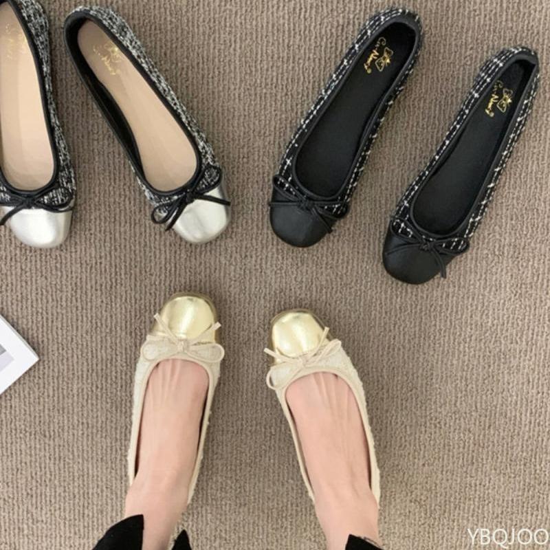 Elegante, schlichte Ballerinas mit Schmetterlingsmotiv, Schleife und eckiger Spitze, bequeme und lässige Damenschuhe mit weicher Sohle – ein neues, modisches und vielseitiges Modell.