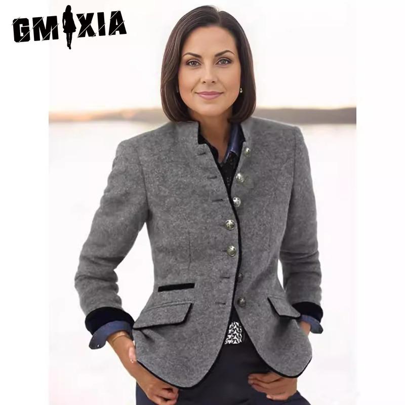 GMXIA Damen Vintage Casual Einfarbig Druck Herbst Winter Langarm Jacken & Mäntel