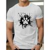 Europäische Größen Herren Kurzarm-T-Shirt mit Tinten-Hundepfotenabdruck - Sommerlich Lässig Rundhals Oberteil, Haustierliebhaber Kleidung, Maschinenwaschbar Normale Passform