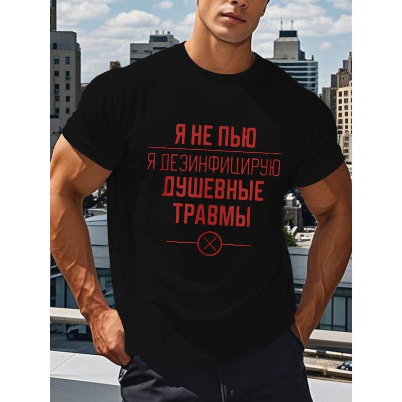 European sizes Mens Casual Summer T-Shirt with Bold Russian Text "I Dont Drink" | Crew Neck Short Sleeve Top, Lightweight & Breathable