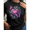 Europäische Größe Herzförmig Bedruckte Damen Kurzarmhemden, Lässige Kurzarm-Rundhals-Oberteile für Frühling und Sommer