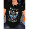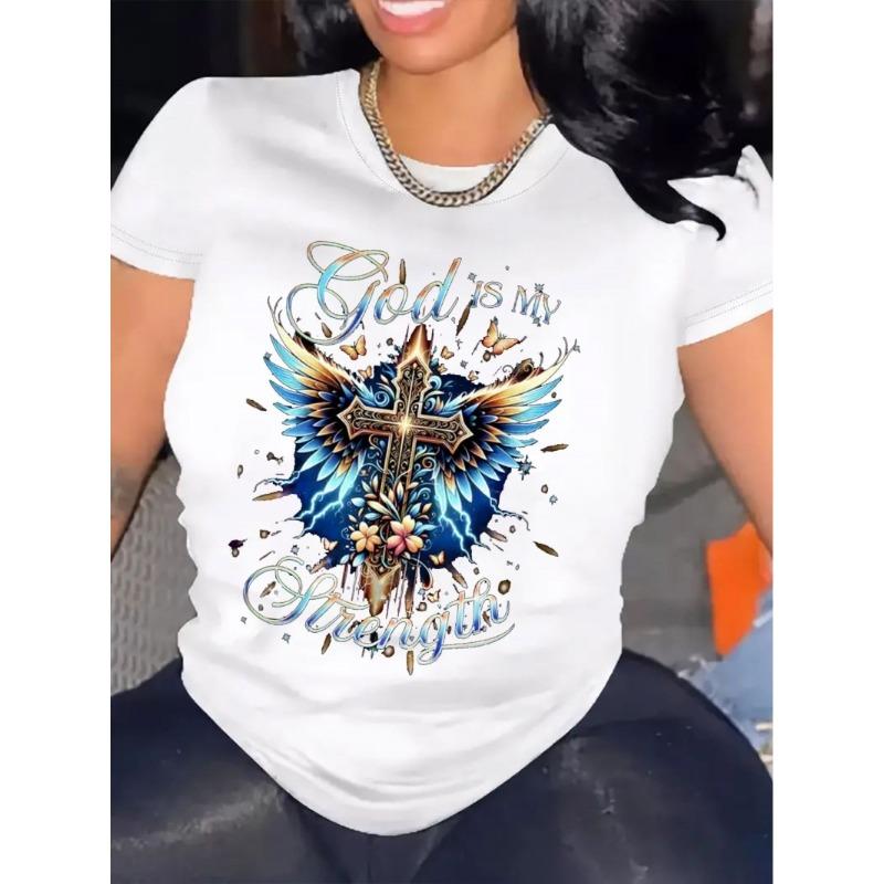 Europäische Größe Gott ist meine Stärke Damen-T-Shirt | Bequemer Rundhalsausschnitt, Lässig, Kurzarm, Weiches Atmungsaktives Oberteil, Frühling/Sommer Streetwear