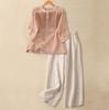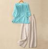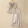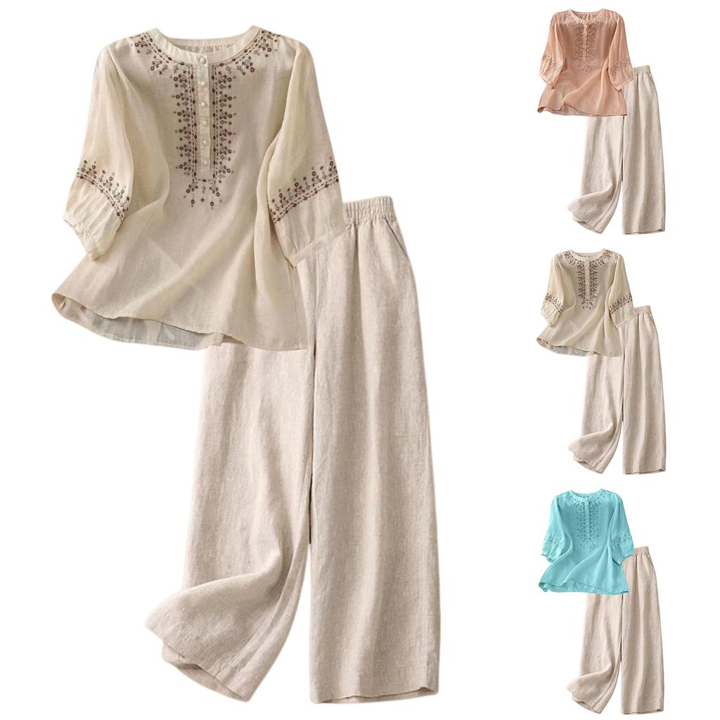 Stilvolles Zweiteiler-Set aus Baumwolle und Leinen: Oberteil, Vintage-inspiriert, Lässig, Und Marlenehosen.