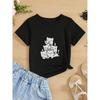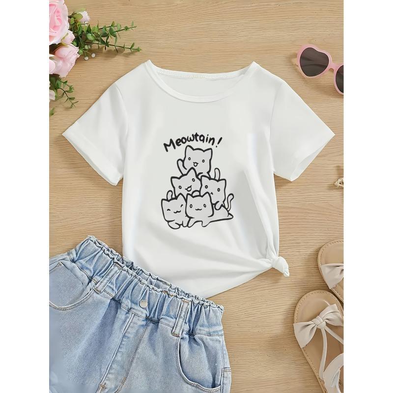 European sizes Girls' Casual T-Shirt nteractive Cat Print Round Neck Fashionable Comfort Spring/Summer Tee, Girls Clothing Gift