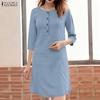 ZANZEA Lässiges, lockeres Kleid mit Stehkragen und langen Ärmeln für Damen
